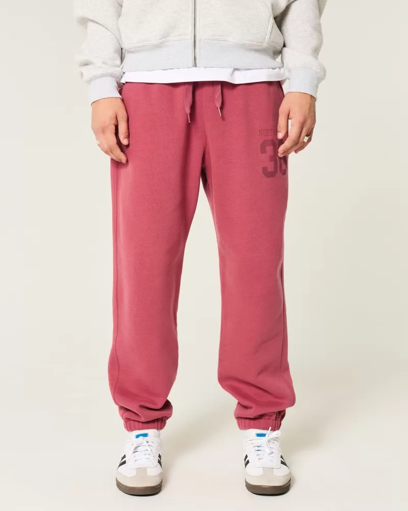 Super soft fleece sweatpants designed with a baggy leg and cinched hems. Drawstring waist, pockets, right zipper pocket.