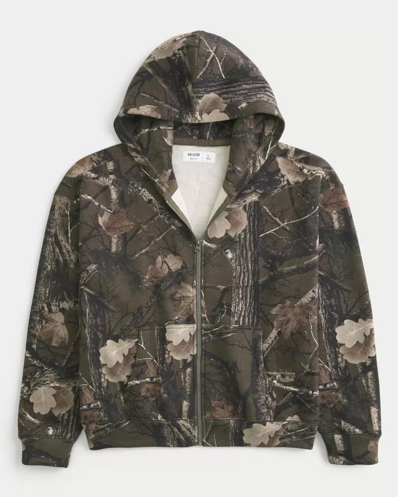 Boxy Camo Zip-Up Hoodie