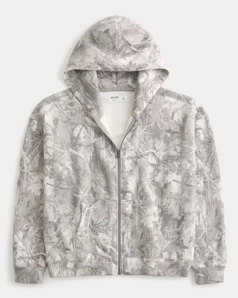 Boxy Camo Zip-Up Hoodie