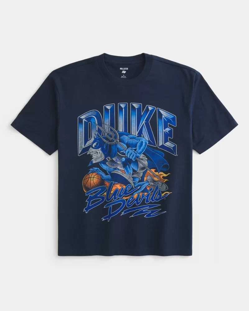 A super soft tee featuring official licensed Duke University Blue Devils print graphics. Crew neckline, short sleeves. Boxy Fit. Imported.