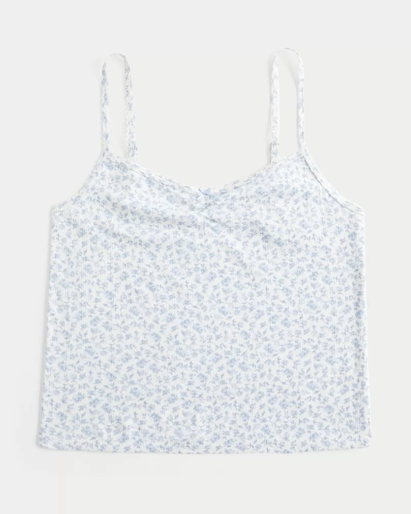 A cute and cozy tank in super soft pointelle fabric with a pretty bow detail at the center neckline. Adjustable straps. Easy Fit. Imported.